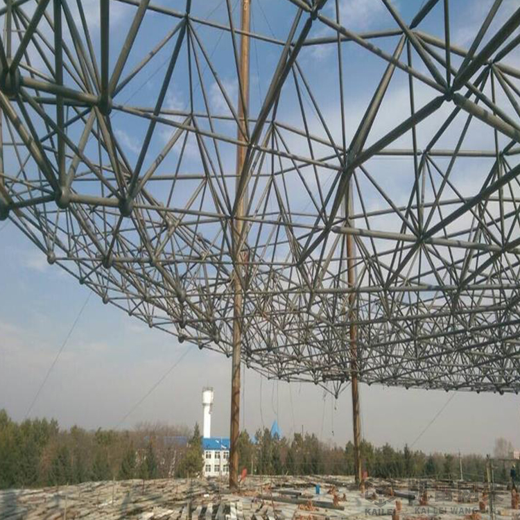 球形污泥池料場(chǎng)全封閉網(wǎng)架采用正放四角錐形式,采用螺栓球接點(diǎn),采用普通鋼管材,采用兩側(cè)焊接水平支座。